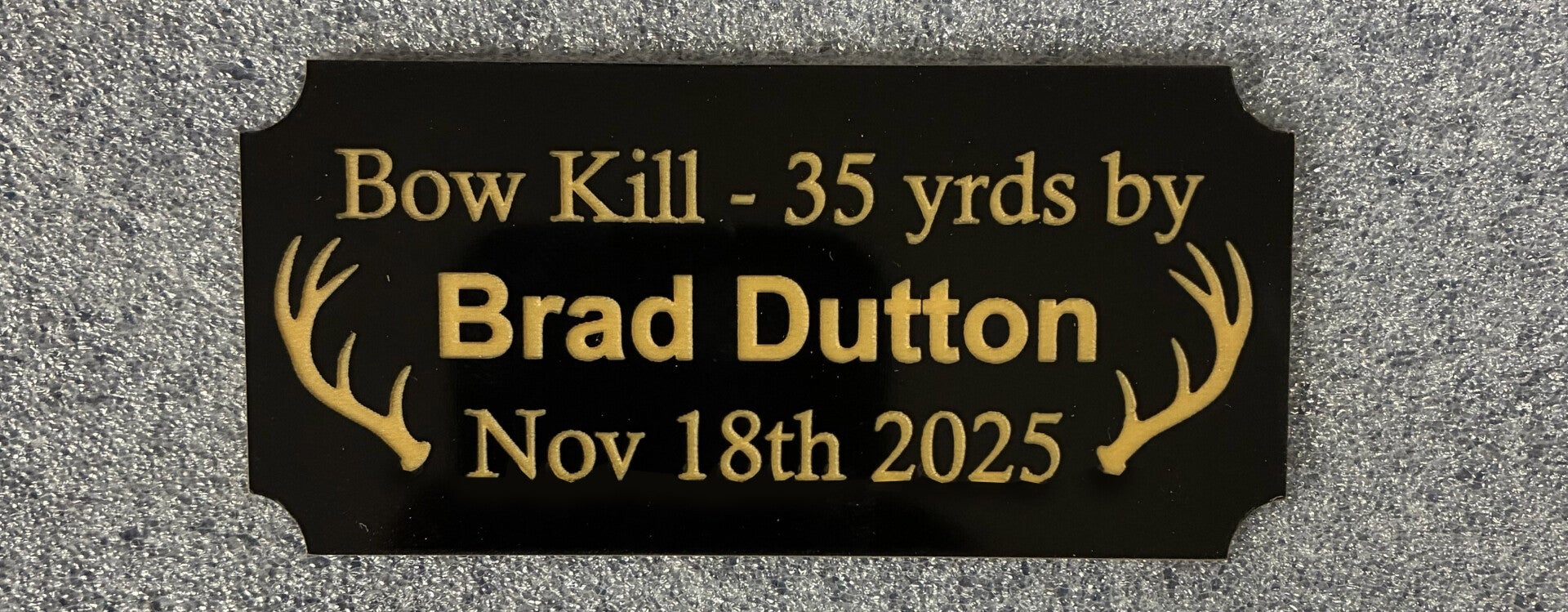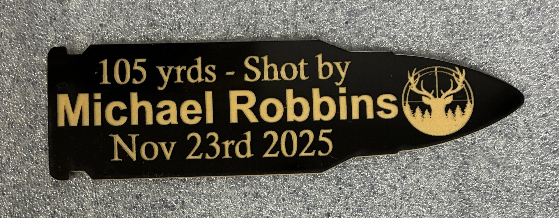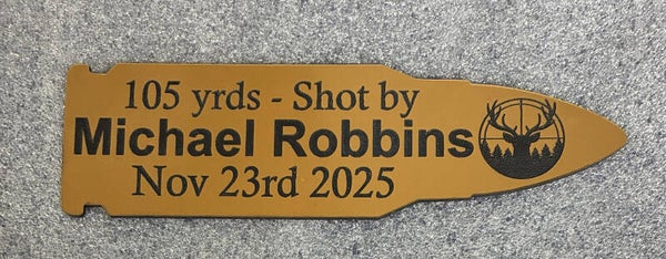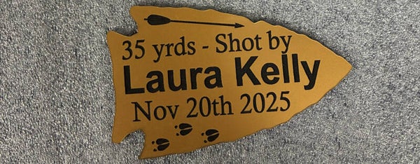 Our plaques are available in a variety of styles and colors. Include whatever information you like: Name, Date, Yardage, Antler points, etc. Finish it off with a couple eye-catching graphic choices to really make it stand out.